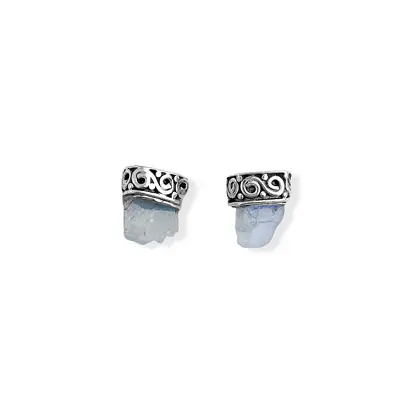 BRINCO EM PRATA925 PEDRA DA LUA NATURAL E BRUTA COM DETALHES EM RELEVO - 1,4CM