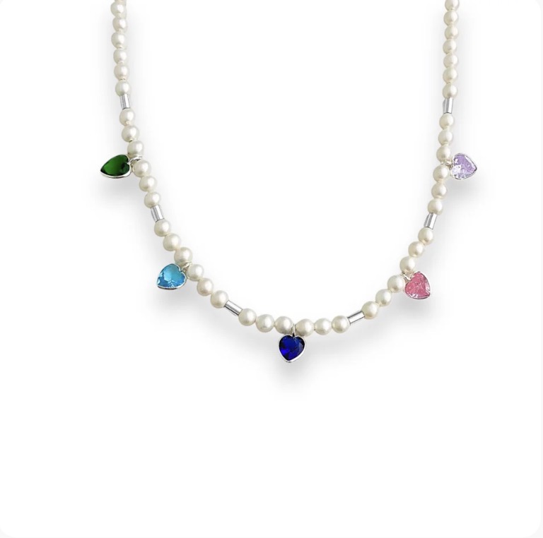 Gargantilha em Prata925 de Pérolas Shell com Zircônias Coloridas