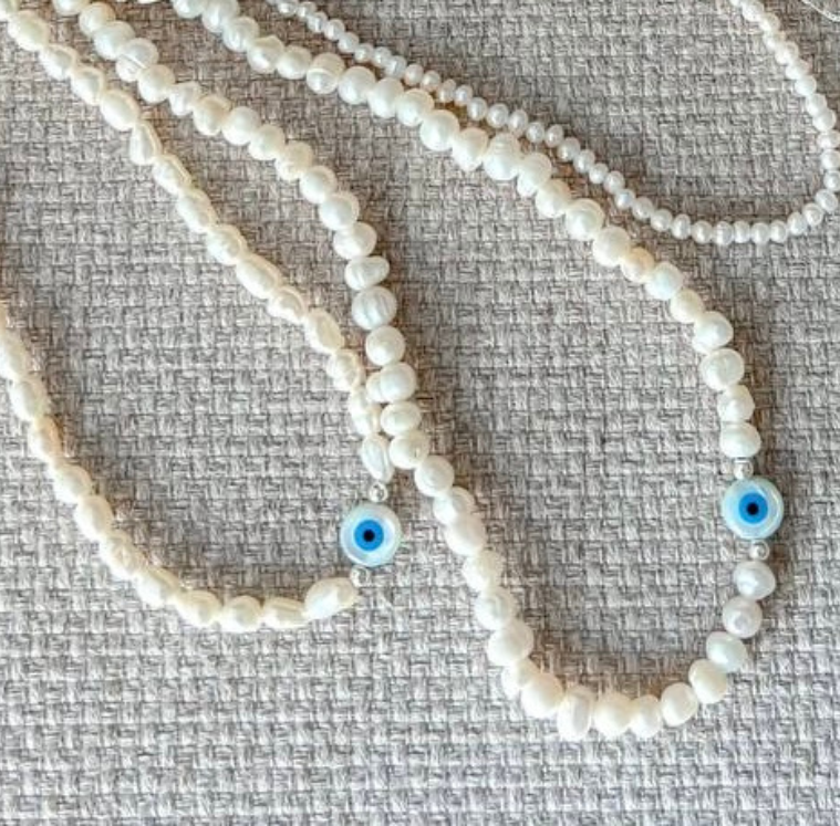 GARGANTILHA EM PRATA925 - PÉROLA\OLHO GREGO 36CM+5CM EXT