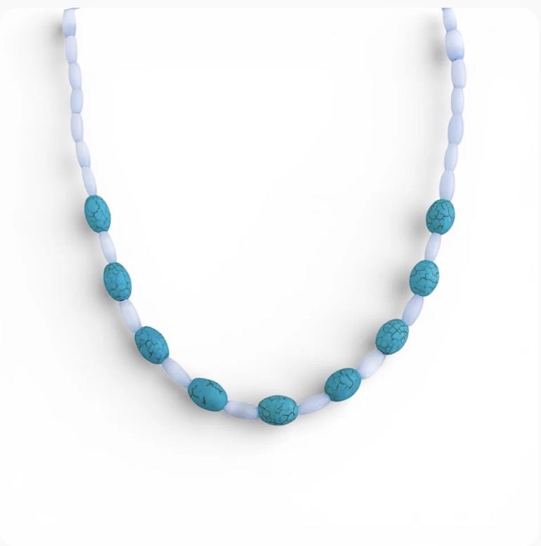 Gargantilha Olho de Gato com Howlita Turquesa Tambor Liso