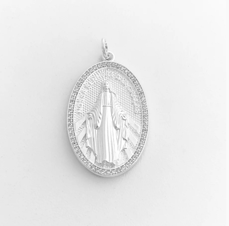 Pingente em Prata925 - Nossa Senhora das Graças com Bordas Cravejada com Zircônias