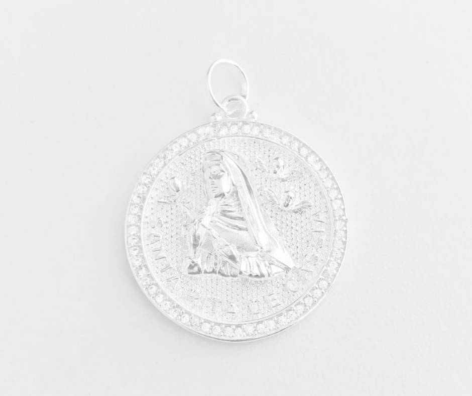 Pingente em Prata925 - Santa Rita de Cassia com Bordas Cravejadas de Zircônias
